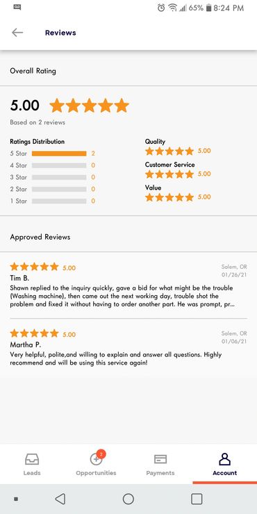 Over 75% of my clients are return clients. Why? Because I connection a personal level with them. My work, reliability, dedication, affordability make it twhere you will want to do more for your home. I also offer a 10% discount on your next project as a return customer.